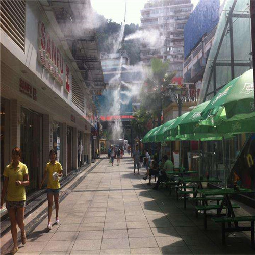 利用高压泵和高压精微喷头产生极细小的雾粒从而蒸发降温。这一方法是利用精密的制造技术,生产出符合流体力学原理的喷头,同时通过高压泵产生高压水,经耐高压管道系统通达喷头,喷出细小的水雾。喷头制造需要较高的技术,系统需要较高的造价。高压微雾喷雾系统使得超微小的雾滴达到5 - 10微米,因此极大地提高了蒸发效率,因此水的蒸发量大大提高,在水的汽化过程中吸收热量,降低温度、提高空气相对湿度。由于空气的湿度增加,因此将大大减少空气中的有害粉尘,达到净化空气的作用。在使用过程中无水滴现象、雾化细、射程运,如果配合大流量轴流风机使用,增加室内的排风量,提高空气流动速度,可进一步提高使用效果。