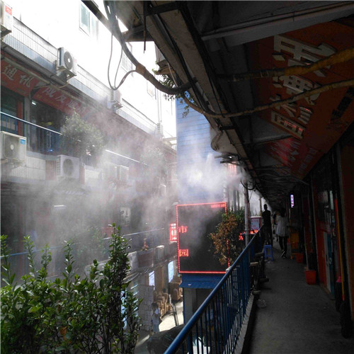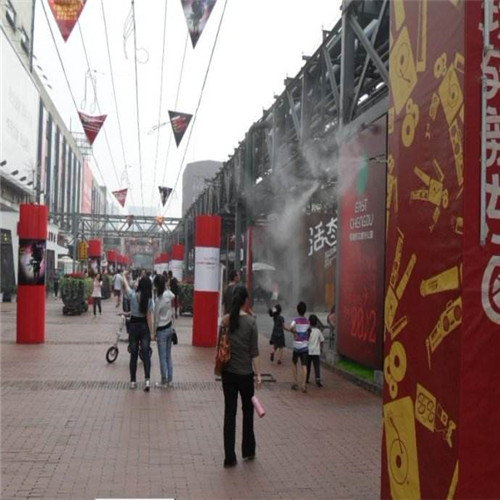 华体在线注册商业中心步行街喷雾降温设备散发到空气中的水微粒,在气化过程中要吸收大量周围环境中的热量,从而降低周围环境的温度,是防暑降温的有效手段.