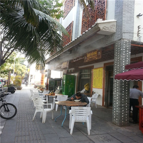 东佳强商业街凉亭喷雾降温设备打破了常规空调只能在封闭的室内使用的弊端,它能在室外广场、户外景区、开放式或半开放式区域中广泛使用,以缓解露天环境下的炎热酷暑气候,为人们带来舒适凉爽的氛围。