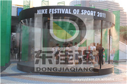 在夏天,当城市气温到达35度以上时,即使打着伞,戴着太阳镜,来自太阳的直射和来自地上的反射,依然让人感觉盛暑难当。东佳强喷雾降温设备的喷嘴的时候构成3-10μm左右的雾微粒,呈锥形喷撒至整个空间,这些细小的雾粒很多集合并漂浮在空气中,构成白色云雾状的雾形作用。