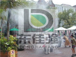 景区景点降温喷雾人造雾工作原理:利用高压泵和高压精微喷头产生极细小的雾粒从而蒸发降温。这一方法是利用精密的制造科技,生产出符合流体力学原理的喷头,同时通过高压泵产生高压水,经耐高压管道系统通达喷头,喷出细小的水雾。喷头制造需要较高的科技,系统需要较高的造价。高压微雾喷雾系统使得超微小的雾滴达到5-10微米,因此极大地提高了蒸发效率,因此水的蒸发量大大提高,在水的汽化过程中吸收热量,降低温度、提高空气相对湿度。由于空气的湿度增加,因此将大大减少空气中的有害粉尘,达到净化空气的作用。在使用过程中无水滴现象、雾化细、射程运,如果配合大流量轴流风机使用,增加室内的排风量,提高空气流动速度,可进一步提高使用效果。