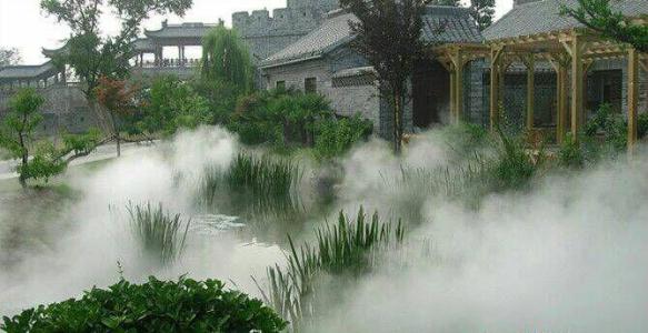 1.造景和保湿:雾既可轻盈婉约,虚无飘渺,又可溟溟漠漠,浩浩漫漫,即可单独成景,自成一方天地,又可结合水系、假山、绿植、灯光等各种元素而形态各异,相得益彰。其变化多端的形态和功能,将为中国园林的景观意境更添水墨元素。其特有的保湿功能,能更好的兼具植物的养护和生长;